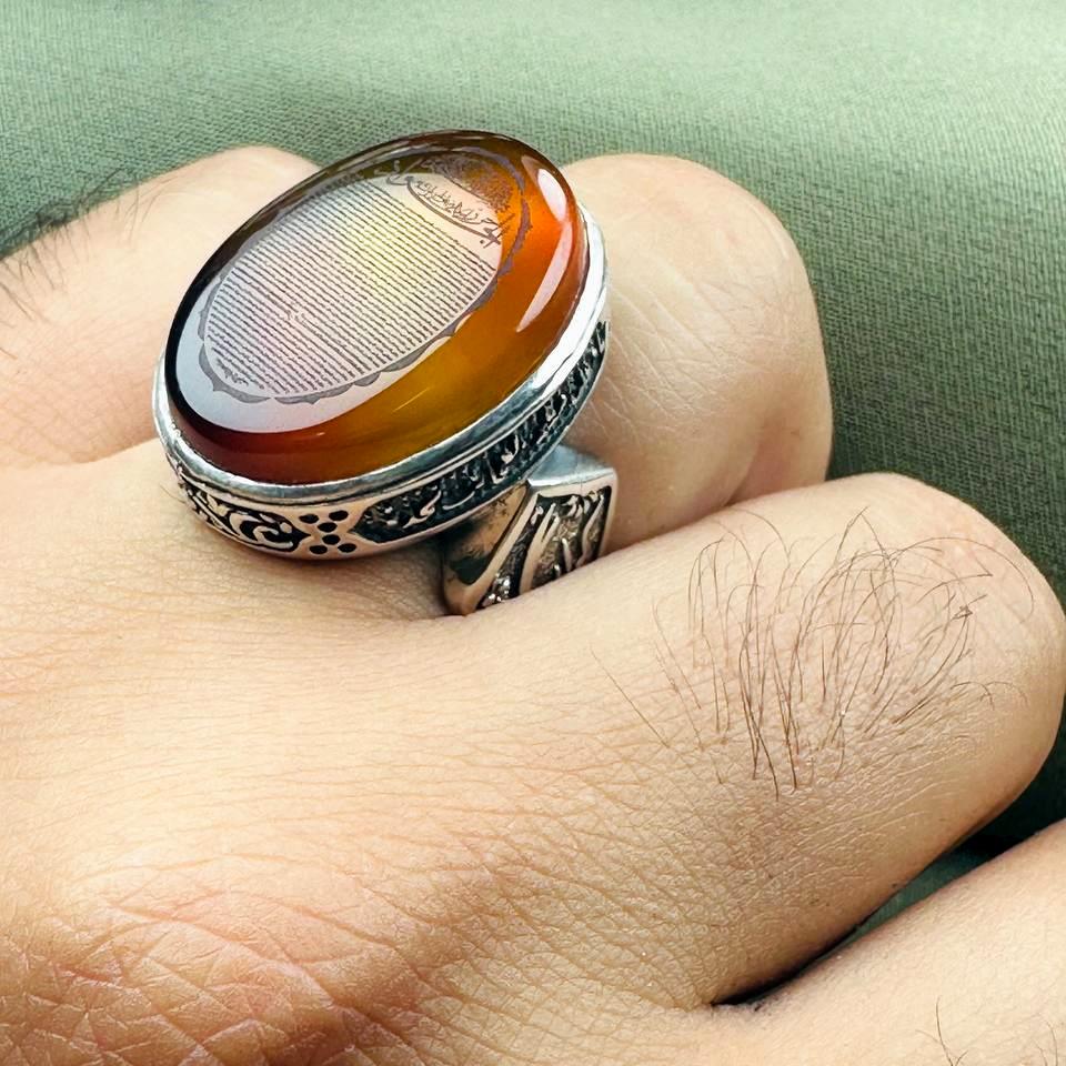 Natural Red Aqeeq (Brown Agate) Ring 925 Silver – Chaandi Ring