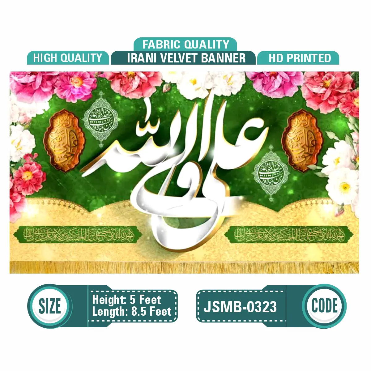 "Shop premium HD printed Irani velvet banners – vibrant, high-resolution prints on luxurious velvet fabric. Ideal for religious ceremonies, weddings, décor, and custom event needs. Fast shipping & custom sizes available."