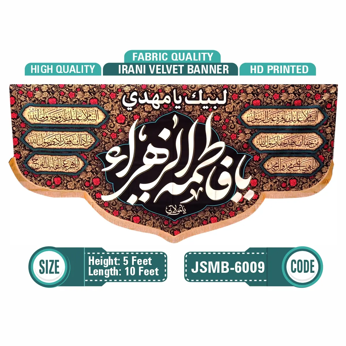 "Shop premium HD printed Irani velvet banners – vibrant, high-resolution prints on luxurious velvet fabric. Ideal for religious ceremonies, weddings, décor, and custom event needs. Fast shipping & custom sizes available."