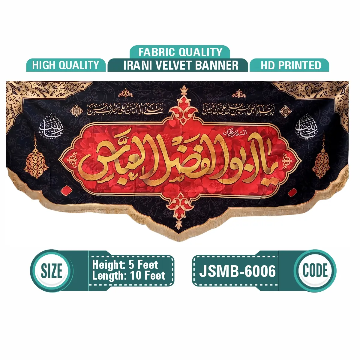 "Shop premium HD printed Irani velvet banners – vibrant, high-resolution prints on luxurious velvet fabric. Ideal for religious ceremonies, weddings, décor, and custom event needs. Fast shipping & custom sizes available."