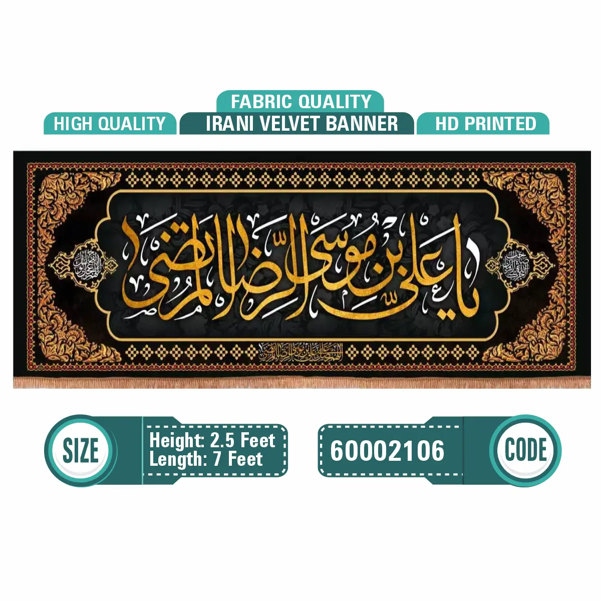 "Shop premium HD printed Irani velvet banners – vibrant, high-resolution prints on luxurious velvet fabric. Ideal for religious ceremonies, weddings, décor, and custom event needs. Fast shipping & custom sizes available."