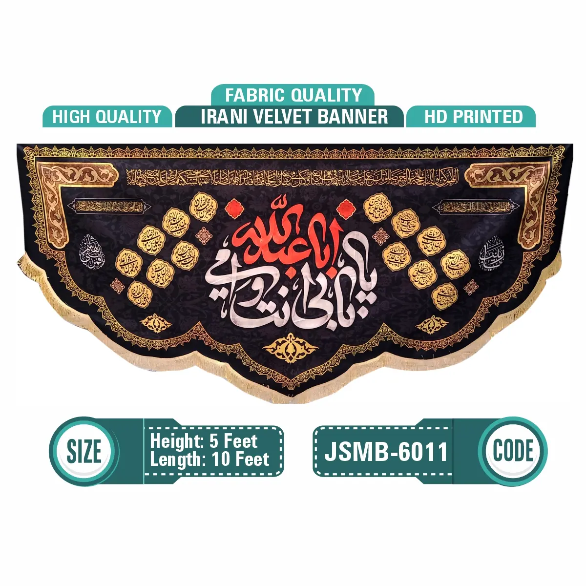 "Shop premium HD printed Irani velvet banners – vibrant, high-resolution prints on luxurious velvet fabric. Ideal for religious ceremonies, weddings, décor, and custom event needs. Fast shipping & custom sizes available."