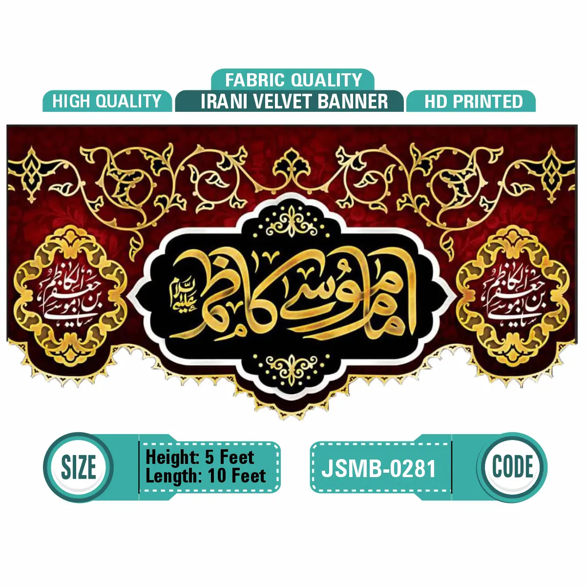 "Shop premium HD printed Irani velvet banners – vibrant, high-resolution prints on luxurious velvet fabric. Ideal for religious ceremonies, weddings, décor, and custom event needs. Fast shipping & custom sizes available."