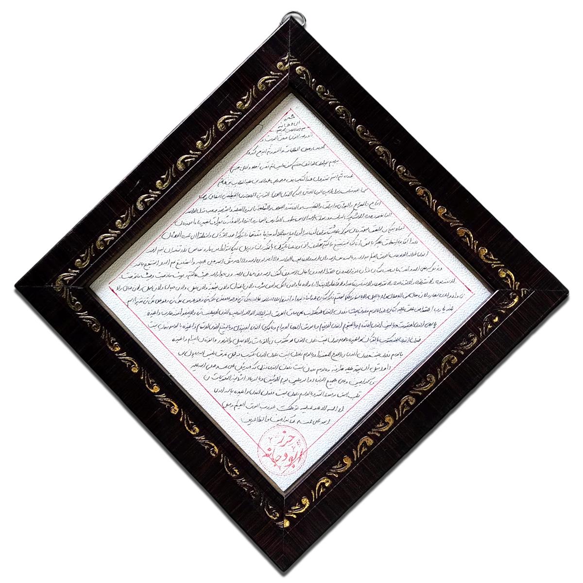 نوٹ: (ماہر عامل کے ہاتھ سے ہرن کھال پہ تحریر شدہ حرزِ ابی دجانہ تمام آداب و شرائط کے ساتھ لکھا گیا ہے جسکی بدولت اسکی افادیت کمال ہے،)