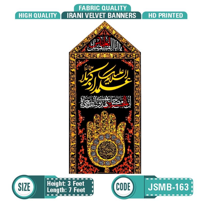 Beautiful Irani HD printed Velvet Banner for Majalis, Drawing rooms, TV launch etc. Design Related Hazrat Abbas Alamdar e Karbala a,s [Available Sizes: 3X7 feet] Specially designed for Jaloos e Aza Alam Pak