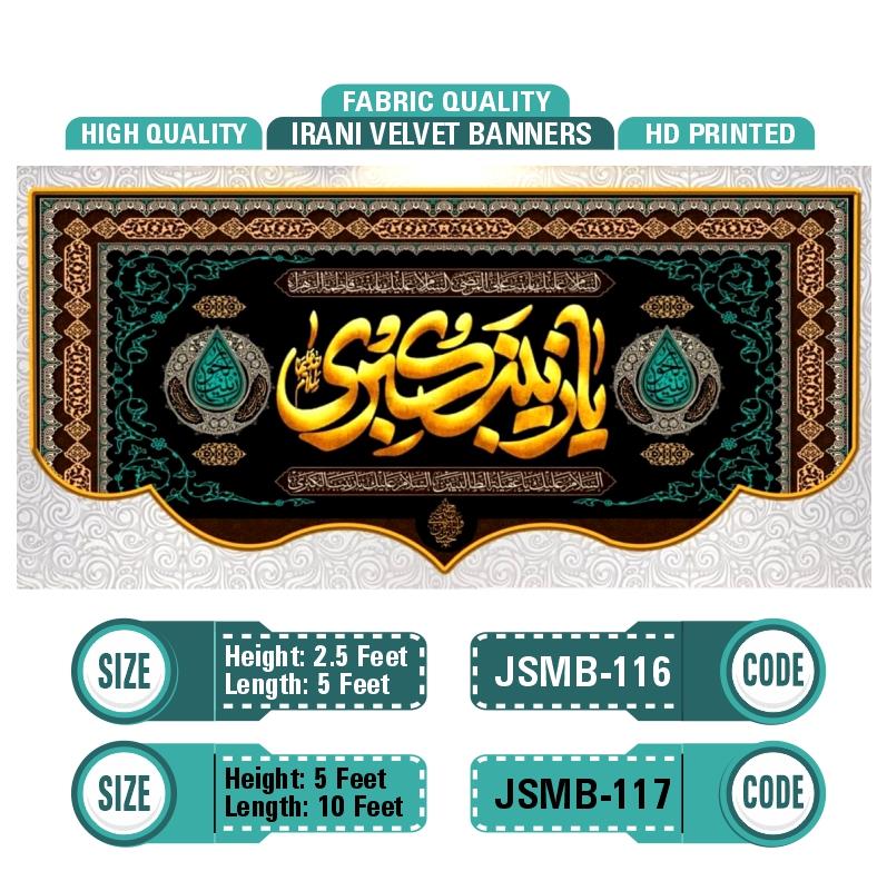 Beautiful Irani HD printed Velvet Banner for Majalis, Drawing rooms, TV launch etc. Design Related Syeda Zainab s.s [Available Sizes: 2.5X5 & 5X10 feet] Perfect for Ashra e Majalis Moharram ul Haram & Jashan Majalis