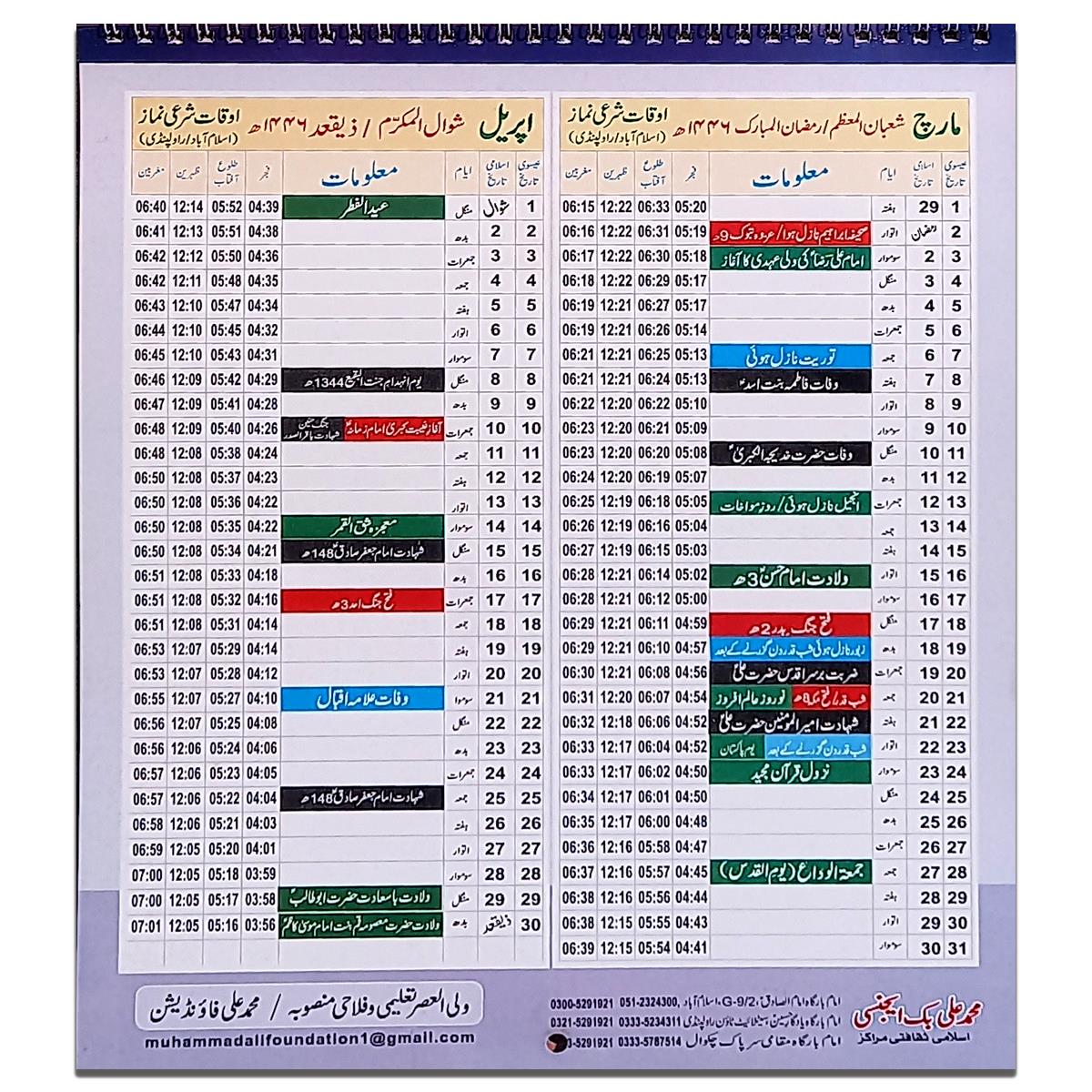 اسلامی کیلنڈر تمام اسلامی مناسبتوں، و دیگر ضروری تفصیلات کے ساتھ آرٹ کارڈ پہ پرنٹڈ عزیز احباب کو ہدیہ کرنے/ اسلامی تقریبات سے آگاہی کے لئے اعلیٰ