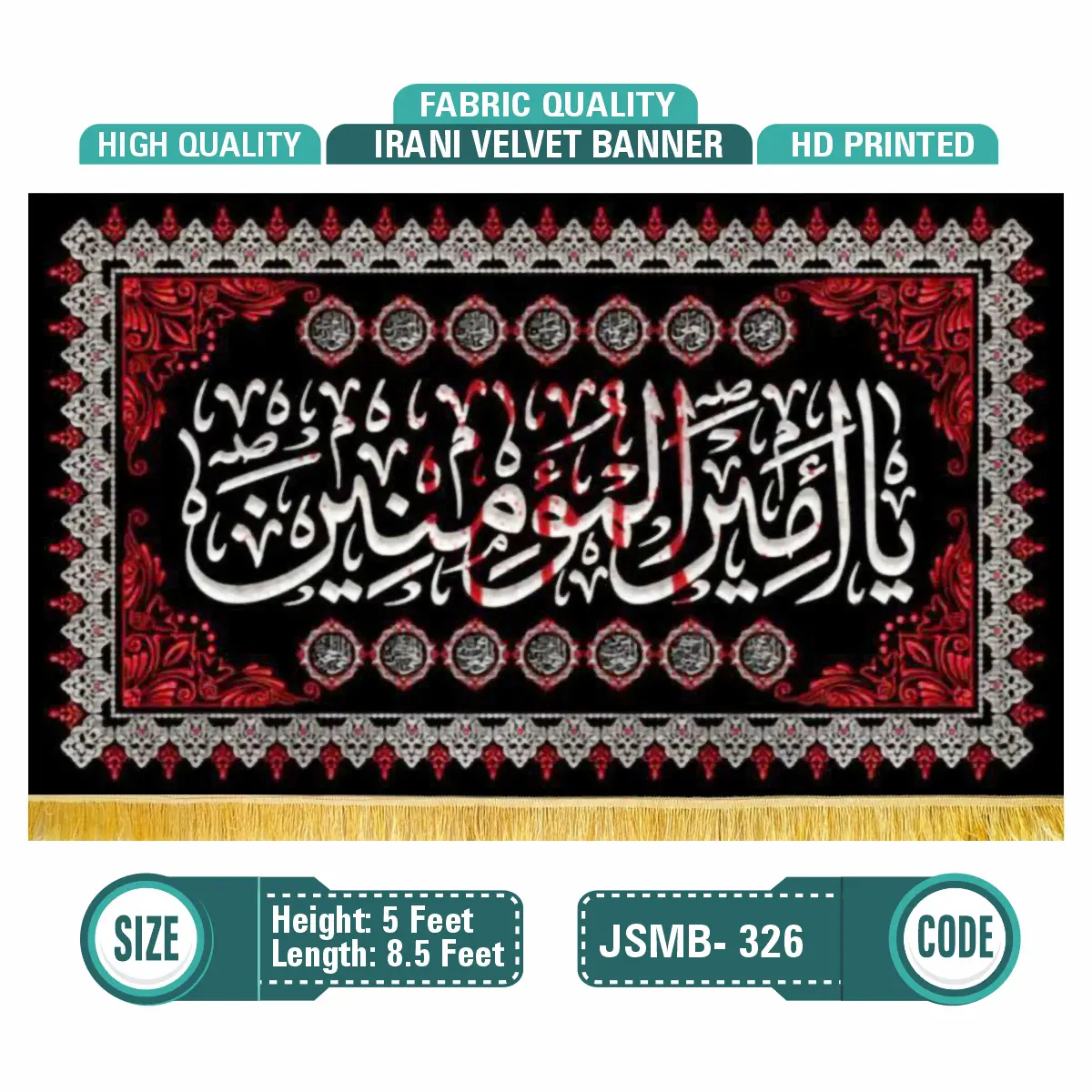 "Shop premium HD printed Irani velvet banners – vibrant, high-resolution prints on luxurious velvet fabric. Ideal for religious ceremonies, weddings, décor, and custom event needs. Fast shipping & custom sizes available."