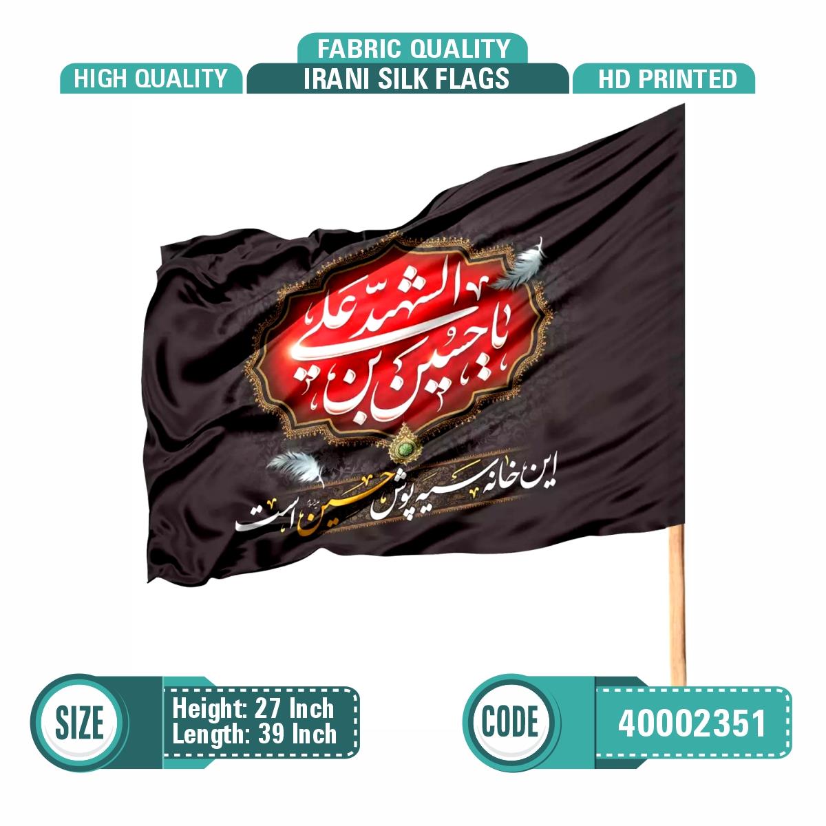 Unique design Irani Printed Alam Pak. Black background with White Ya Hussain Ibn e Ali a.s Shaheed written in Thulth Font (Calligraphy). Awesome design & Quality. Imported Jorjet stuff, High quality HD print.